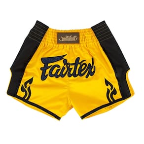 Obtenha o desempenho e o estilo que você precisa com os shorts Fairtex Muay Thai. Feitos de cetim de alta qualidade, esses shorts são feitos para suportar os rigores de intensas sessões de treinamento e competições. O design tradicional do Muay Thai apresenta bordados e detalhes intrincados, dando a esses shorts uma aparência profissional e autêntica. A cintura elástica e o cordão garantem um ajuste seguro e confortável, enquanto a variedade de tamanhos disponíveis torna esses shorts adequados para uma variedade de tipos de corpo. Se você está treinando ou competindo, esses shorts são indispensáveis para qualquer praticante sério de Muay Thai.