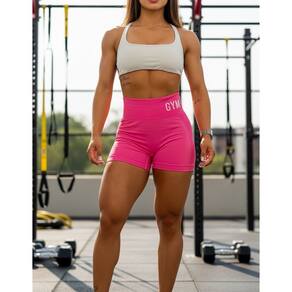 Shorts Feminino Esportivo Levanta Bumbum Compressão Sem Costura Cintura Alta Yoga Sport - GG - Pink