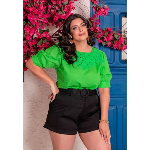 Shorts Feminino Plus Size Alfaiataria Com Cinto Forrado - Preto - 50