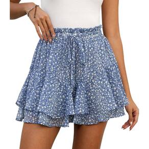 - Os shorts elegantes são de chiffon com bainha com babados de duas camadas, 95% poliéster, 5% viscose, criando uma aparência graciosa de saia. Os shorts embutidos proporcionam conforto e liberdade de movimento, perfeitos para usar o dia todo