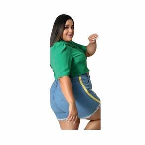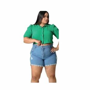 Shorts Plus Size, com detalhes na lateral. Fechamento com zíper e botões. Confeccionado em tecido jeans, sem elastano. Bolso dianteiro invisível e traseiro usável. Composição do Tecido: 100% Algodão