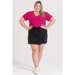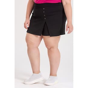 Shorts saia feminino plus size com Fenda na Perna tambem possui um lindo detalhe com botoes.