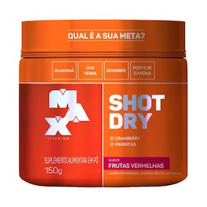 O Shot Dry é um blend de ingredientes Formado por: Guaraná em pó; Chá Verde, Gengibre, Cranberry, Pimenta Preta e Pimenta Vermelha. Possui apenas 15 kcal na dose, além de ser zero glúten, zero lactose e fornecer 75 mg de cafeína.