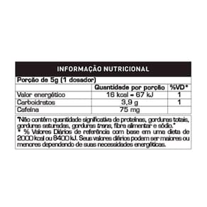 Maltodextrina, guaraná em pó, chá verde em pó, gengibre em pó, cranberry em pó, pimenta preta em pó, pimenta vermelha em pó, aromatizante, acidulante ácido cítrico, edulcorante sucralose, estabilizante goma xantana e antiumectante dióxido de silício. NÃO CONTÉM GLÚTEN.
