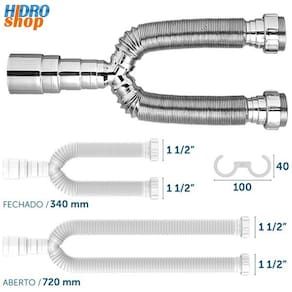 Sifão duplo extensivo 1.1/2" cromadp 720mm