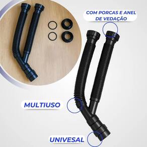 Sifão sanfonado duplo lavatório/pia/tanque 80cm preto preto