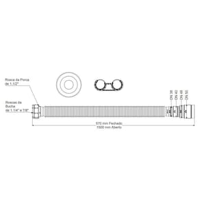 Sifão Sanfonado Extensível Censi 1,5m Preto Cor: Preto Brilho Garantia: 1 ano junto ao fabricante Referência: 7215 Temperatura Máxima da Água: 90C Comprimento Aberto: 150cm Comprimento Fechado: 57cm Composição: Elastômeros e plástico de engenharia Itens inclusos: 1 Sifão Sanfonado 1 Canopla 1 Suporte