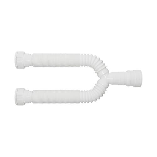 Aplicação: Cozinhas e lavanderias com cubas duplas Cor: Branco Material: Plásticos de engenharia e elastômeros Comprimento: Extensível de 33 cm a 70 cm Diâmetro de entrada: Roscas de 7/8", 1.1/4" e 1.1/2" Diâmetro de saída: DN38, DN40, DN48 e DN50 Instalação: Universal – fácil adaptação Temperatura suportada: Até 90°C Pressão suportada: Baixa e alta pressão Acompanha: Canopla e bucha de redução Garantia: 3 meses contra defeitos de fabricação Origem: Nacional (Brasil)