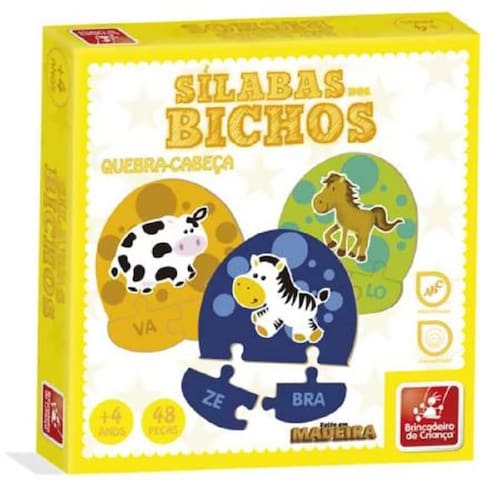 Forma Lúdica para aprender a separar as primeiras sílabas. Recortes especiais 16 quebra cabeças com 55 peças. Informações Básicas: Marca: Brincadeira de criança Ref: 9862 Idade Recomendada: Acima de 4 anos Dimensões da embalagem: 23 CM x 22 CM x 4 CM Código de Barras: 7898925879862 CE-BRI/OCP - N 00013-01 NM 300/2002 Composição/material: Madeira Garantia: Contra Defeitos de Fabricação Todas as informações divulgadas são de responsabilidade do fabricante/fornecedor. Imagens Meramente Ilustrativas. Observe atentamente a idade recomendada para o brinquedo. Pode conter partes pequenas que podem ser engolidas e perigosas. Ean: 7898925879862