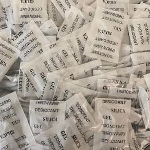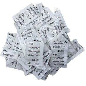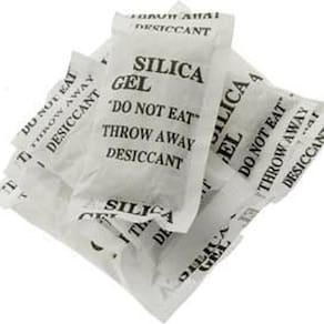 Os saquinhos de sílica-gel são dessecantes, absorvem a umidade e prolongam a vida útil dos objetos. Por isso, são colocados em caixas ou outros recipientes de produtos sensíveis à umidade. Eles conseguem absorver até 40% do seu próprio peso em vapor de água.