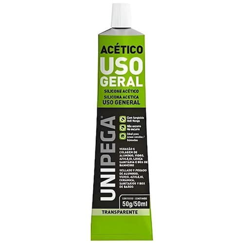Selante de silicone monocomponente cura acética indicado para vedação e colagem de alumínio, vidro, azulejo, louça sanitária e box de banheiro. Resistente à formação de fungos.