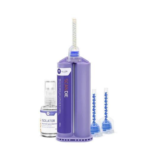 Indicado para fabrícação de modelos semi-rígidos para restaurações indiretas. Cor Dentina: não influencia na cor da restauração indireta; Autonivelante; Proporção 1:1; Confortável tempo de trabalho/presa intraoral; Excelente tempo de presa; Elevada dureza e rigidez; Dispensa a fabricação de troqueis; Sem risco de fratura do modelo; Validade: 2 anos a partir da data de fabricação; Registro ANVISA: 81009350002.Embalagem com 50ml + 6 pontas automisturadoras Scan Automix + 1 Isolator 6mL.