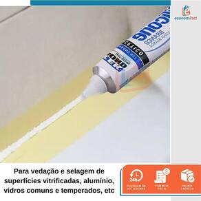 O silicone acético pode ser aplicado em superfícies vitrificadas, alumínio, vidros comuns e temperados, azulejos e louças sanitárias.
