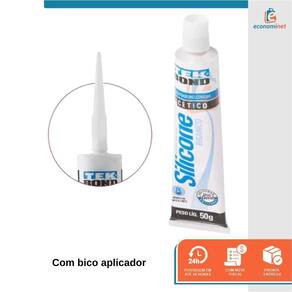 O kit contém 12 unidades de silicone acético branco, com peso de 50g cada.