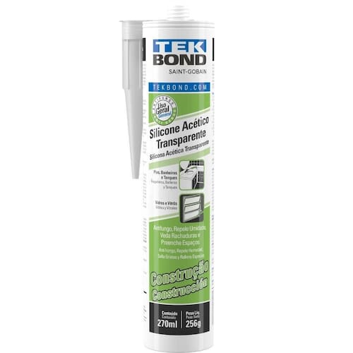 Entre os diferenciais do TEKBOND estão a resistência à água, durabilidade em contato com intempéries e flexibilidade após a cura, permitindo absorção de movimentos sem fissuras. Ideal para uso interno e externo, o produto oferece acabamento limpo e confiável, sendo compatível com materiais como vidro, alumínio, cerâmica, madeira, plástico e superfícies pintadas. Sua tecnologia acetica garante fixação rápida e eficiente, acelerando o processo de acabamento.