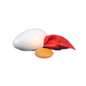 O artista empurra um lenço em sua mão esquerda fechada. Quando ele abre a mão, a seda parece ter se transformado em ovo! Oferecendo "explicar" o truque, o mágico mostra que o ovo está oco com um buraco em uma das extremidades. Ele puxa a seda e exibe o ovo oco. Mais uma vez, ele empurra a seda para o ovo e mostra como cobrir o buraco com o polegar. Então, ele explica que alguém pode querer questionar o ovo e, nesse caso, tudo o que você deve fazer é quebrar o ovo na borda de um copo e derramar a gema e o branco, o que o mago faz!