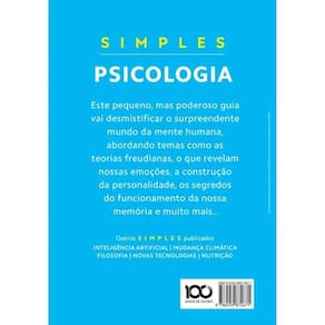 Compreender a mente humana nunca foi tão simples O que é exatamente a psicologia? Como funciona a mente humana? Por que desenvolvemos traumas, fobias e preconceitos? Esse pequeno e poderoso guia desmistifica os conceitos fundamentais da psicologia, desde as primeiras teorias de Freud até as descobertas mais recentes sobre memória, linguagem e comportamento. O volume faz parte da coleção?“Simples”, que apresenta temas atuais e relevantes de forma acessível e direta. Com infográficos, ilustrações e textos dinâmicos, o livro responde de maneira clara a diversas questões essenciais sobre a mente, traçando também perfis de figuras marcantes da área como Freud, Jung, Lacan e Chomsky Simples – Psicologia?é ideal para estudantes, educadores e curiosos, e também para os fãs da coleção best-seller “As grandes ideias de todos os tempos”. Marca: Não Informado