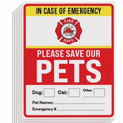 Material: PVC Tamanho: 10x12,7 cm Alerta de emergência para animais de estimação: apresenta uma mensagem clara “Salve nossos animais de estimação” para garantir a segurança dos animais de estimação em caso de incêndio ou situações de emergência. Design de alta visibilidade: o fundo vermelho e amarelo brilhante com o logotipo do Corpo de Bombeiros facilita a localização em caso de emergência. Informações personalizáveis: inclui espaços para escrever detalhes do animal de estimação (cachorro, gato ou outro), nomes de animais de estimação e números de contato de emergência para referência rápida. Durável e à prova de intempéries: feita de material de vinil de PVC de alta qualidade, a placa é resistente às intempéries e ideal para uso interno e externo. Fácil de aplicar: o decalque de vinil autoadesivo pode ser facilmente aplicado em janelas, portas ou outras superfícies para visibilidade rápida em emergências.