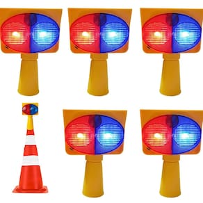 duas cores, sendo vermelho e azul. O Sinalizador Solar oferece iluminação contínua e um longo alcance de visibilidade. Ideal para canteiros de obras,