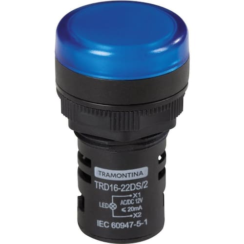 O Sinalizador Tramontina é utilizado para indicar visualmente o funcionamento de uma máquina ou sistema elétrico, em circunstâncias ocorridas ou prestes a ocorrer. A cor azul sinaliza funções de segurança, como reset.