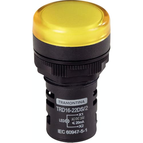 O Sinalizador Tramontina é utilizado para indicar visualmente o funcionamento de uma máquina ou sistema elétrico, em circunstâncias ocorridas ou prestes a ocorrer. A cor amarela sinaliza inverter o sentido ou cancelar a operação. Orientações IP65 Características Gerais EAN13 7891435936124 DUN14 17891435936121 NCM 8531.80.00 Peso Líquido 0,0193 kg. Peso Bruto 0,0243 kg. Dimensões Produto (Compr. X Larg. X Alt.) 30x 30x 50 mm. Cor 1 FFCC66 Hexa Observações Recomenda-se a instalação por pessoal capacitado, seguindo todas medidas de segurança em instalações elétricas.