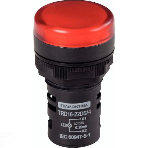 O Sinalizador Tramontina é utilizado para indicar visualmente o funcionamento de uma máquina ou sistema elétrico, em circunstâncias ocorridas ou prestes a ocorrer. A cor vermelha sinaliza parar/desligar um comando. Orientações IP65 Características Gerais EAN13 7891435936216 DUN14 17891435936213 NCM 8531.80.00 Peso Líquido 0,0205 kg. Peso Bruto 0,0265 kg. Dimensões Produto (Compr. X Larg. X Alt.) 30x 30x 50 mm. Cor 1 CC00000 Hexa Observações Recomenda-se a instalação por pessoal capacitado, seguindo todas medidas de segurança em instalações elétricas.