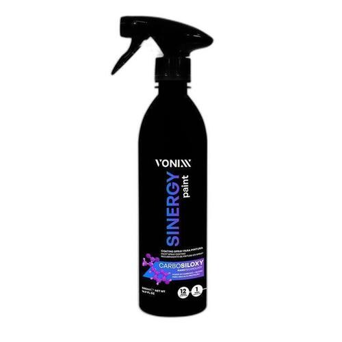 Descrição Sinergy é coating spray de fácil aplicação desenvolvido para pintura de automóveis e tem como função proteger a pintura por até 12 meses. O diferencial desse produto é a sua tecnologia exclusiva vonixx, carbosiloxy, onde o elemento químico carbono age em sinergia com o silício e com isso, forma um filme resistente e super hidrofóbico e tem um tempo de cura menor, em média 60 minutos. Além disso, esse produto reduz o atrito, minimizando riscos e promovendo um excelente brilho.
