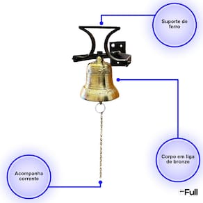 - Dimensões do sino com suporte: 23cm (A) x 11cm (D).