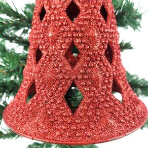 Brilho e elegância: com seu acabamento em glitter vermelho, este sino captura a luz e proporciona um brilho especial, tornando-se um destaque em qualquer arranjo natalino.