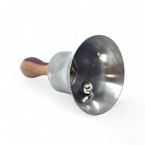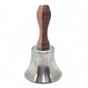 Características do produto: Altura: 10 cm – compacto e de fácil manuseio Largura: 5,5 cm Acabamento em prata brilhante, associado à luz, à prosperidade e à espiritualidade Produz um som limpo e firme, ideal para uso em toques, rezas e defumações