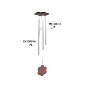 Sino Ventos Mensageiro Dos Ventos 5 Tubos Alumínio Prata Cor: prata Características: -produto de excelente qualidade. -o som que espalha energia positiva e traz equilíbrio e tranquilidade ao ambiente. -sino dos ventos tem como finalidade principal além do som agradável, energizar o ambiente, seja pelo som que provoca, seja pelo seu movimento, favorecendo a harmonia no ambiente. -a uma base flor de mdf de cor escura. -com 5 tubos de alumínio.