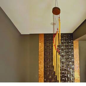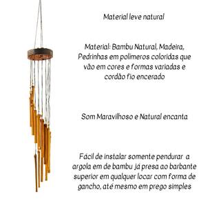 Ótimo para decorar o ambiente externo de sua casa, feito de bambu, esse mensageiro dos ventos é muito resistente e aguenta muito vento. o som que espalha energia positiva e traz equilíbrio e tranquilidade ao ambiente. Sino dos ventos tem como finalidade principal além do som agradável, energizar o ambiente, seja pelo som que provoca, seja pelo seu movimento, favorecendo a harmonia no ambiente.