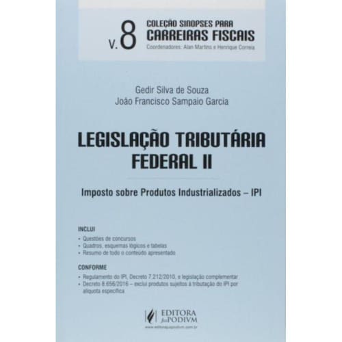 A Coleção Sinopses para Carreiras Fiscais foi concebida com a finalidade de preencher uma lacuna presente no mercado editorial voltado para concursos públicos. O objetivo é contemplar em uma única coleção livros com foco específico na preparação para concursos de ingresso em carreiras fiscais, diferenciados por uma abordagem completa, objetiva e sistematizada. Primamos pela escolha de autores especializados nas matérias, selecionados segundo critérios tais como aprovações em concursos na área fiscal, experiência docente em cursinhos preparatórios e histórico de sucesso no mercado de livros voltados para concursos. Separamos as principais matérias dos concursos federais, estaduais e municipais para agentes e auditores fiscais, técnicos e analistas tributários, traçando para os autores a meta de abordar todo o conteúdo exigido nos editais dos principais concursos do país. Não obstante a pretensão de propiciar ao leitor obras completas e com densidade suficiente para o êxito máximo consubstanciado na aprovação, para todos os volumes da coleção, definimos como metodologias a exposição objetiva das matérias, a sistematização lógica dos temas e uma abordagem teórica concomitante com a apresentação de questões das principais bancas e concursos. Na exposição teórica e prática das matérias, foi prestigiada a técnica de se destacar palavras-chaves e trechos essenciais dos textos. E, por meio de elucidativos quadros denominados Como esse assunto foi cobrado em concurso.
