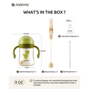 Joypony Copos para crianças de 1 ano com bico e canudo, copos PPSU sem derramamento com canudo pesado, copos infantis de treinamento à prova de derramamento com alça para bebês a partir de 6 meses - ?Material PPSU para durabilidade?Feito de PPSU, de alta qualidade, este copo com canudinho é livre de BPA, oferecendo forte estabilidade molecular e resistência ao calor. Ao contrário das garrafas PP, o copo PPSU é mais resistente, pode suportar várias quedas sem quebrar e suporta repetidas esterilizações em alta temperatura - ?Sem derramamento, fácil de beber?Com um design anti-vazamento de 4 camadas, o copo garante que não haja derramamentos, mesmo quando invertido. A bola de gravidade na extremidade do canudo permite beber facilmente enquanto está deitado. A tampa se dobra para trás a 180 graus e trava no lugar, garantindo que não deslize para baixo e toque o rosto do seu bebê - ?Simples de usar e limpar?O copo infantil Joypony é projetado para uso sem esforço, com fácil montagem, desmontagem e limpeza. O pescoço largo e menos partes facilitam a limpeza, simplificando sua rotina de limpeza enquanto promove a independência e a coordenação do seu bebê - ?Palha suave e higiênica?O canudo de silicone líquido Joypony é macio em gengivas delicadas, mas resistente o suficiente para uso ativo. Sua válvula em forma de V permite um fluxo de água suave, garantindo um gole sem complicações. Cada copo inclui um canudo substituível para higiene e segurança a longo prazo - ?Design adorável?Com um design divertido do Toby, este copo cativa a imaginação do seu filho, tornando-o um favorito para a escola, atividades ao ar livre ou aventuras diárias