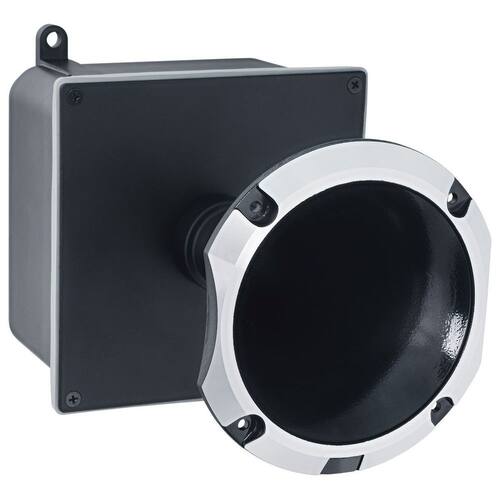 Sirene robusta para uso contínuo em sistemas de alarme e evacuação.