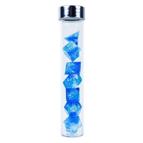Adicione emoção e intriga ao seu jogo com este conjunto de dados poliédricos de bordas afiadas ultra premium. Enrole a matriz e revele o resultado usando a caneta de luz UV que a acompanha. Estes dados são dados translúcidos de bordas afiadas polidas à mão com um brilho opalescente dentro.