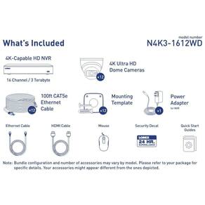 Gravação 4K com Lorex Fusion HDD 3 TB pré instalado, 16 canais, capacidade máxima 2x8TB. Registre e visualize a resolução 4K clara, fornecendo um nível elevado de detalhes e definição. Como parte da coleção Lorex Fusion, você pode adaptar seu sistema de segurança às suas necessidades. Confie em que suas imagens de segurança são privadas e seguras com o disco rígido embutido com grau de segurança, sem taxas mensais ocultas. Câmera IP 4K Ultra HD 4K 8MP , garantindo imagens claras e detalhadas. Veja mais com um amplo campo de visão 105. O HDR de alta faixa dinâmica fornece maior clareza de vídeo na iluminação de alto contraste, revelando detalhes em áreas extremamente brilhantes e sombrias da filmagem. 8MP , 4K 1 , 2.OS. 4K 8MP 15fps. Áudio Equipadas com um microfone embutido, as câmeras fornecerão uma gravação de áudio com escuta. Isso fornecerá uma camada extra de informações ou evidências, como vozes, que não estariam lá apenas com as imagens de vídeo. Visão noturna em cores experimente maior clareza noturna e melhores evidências de vídeo com a Visão noturna em cores iluminação ambiente necessária . Visão noturna de até 130 pés 40m IR com pouca luz e 90 pés 27m na escuridão total. Recursos aprimorados acesse rapidamente suas imagens ao vivo com comandos de voz simples, compatíveis com a e o Google. Controle os recursos das câmeras de dissuasão com sua voz compatível apenas com o Assistente do Google . Como parte da coleção Lorex Fusion, o NVR pode acomodar até dois produtos Lorex Wi Fi em canais abertos. As câmeras estão equipadas com codificação de vídeo de alta eficiência HEVC ou compactação de vídeo H.265 Marca: Não Informado