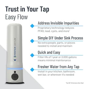 Pentair Sistema de filtragem de água FreshPoint Easy Flow embaixo da pia, filtro de água PFAS, certificado NSF para reduzir grafite e PFOA/PFOS