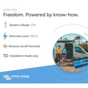 - A entrada dedicada do alternador fornece limitação de corrente e tráfego unidirecional do alternador para a bateria, para que qualquer tamanho de alternador (e bateria de partida) possa ser conectado com segurança à bateria de lítio inteligente ou baterias