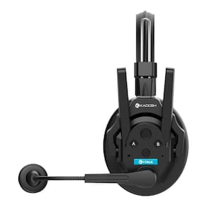 Sistema de Intercomunicação Kadosh KTALK 4 Sem Fio com algoritmo Master Free, modo Boost para aprimoramento de sinais, design leve e confortável em ABS e couro macio, bateria recarregável de longa duração (até 24h), recarga rápida (2,5h), porta P2 de 3,5 mm para monitoramento de áudio, modo dominante, estação de recarga de dois slots.Indicador de carga da bateria