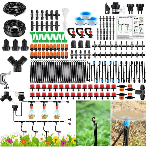- Kit de irrigação por gotejamento de 164 pés: o kit de sistema de irrigação de jardim para plantas inclui tubo principal de 33FT (1/5.1 cm), tubo de distribuição de 131FT (1/10.2 cm), vem com 302 peças e oferecemos acessórios suficientes para você construir 3 conjuntos de pequenos sistemas de irrigação por gotejamento ou 1 conjunto de sistema de irrigação de jardim