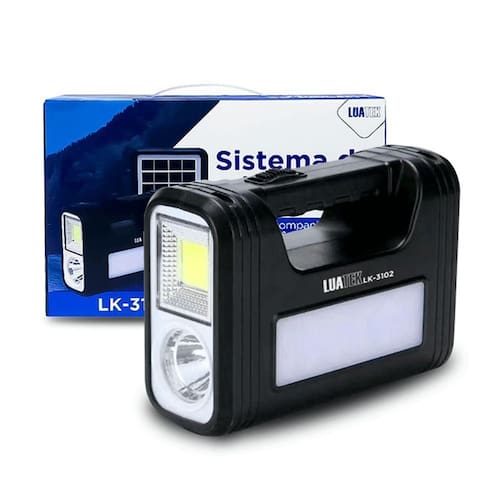 3x Lâmpadas Led de 3w 1x Painel Solar LK-3102 1x Lanterna com Bateria (luz de emergência)