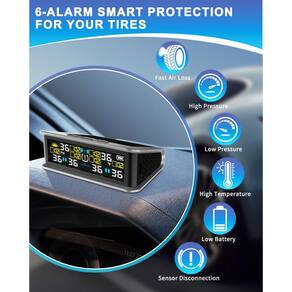 - Monitoramento de precisão e resposta ultrarrápida: monitoramento profissional 24/7 com precisão de ± 1,5 PSI em 0-144 PSI — os sensores de pressão do pneu são atualizados a cada 0,3 segundos (3x mais rápido do que o TPMS padrão) para rastrear todos os 6 pneus simultaneamente. A tela LCD é atualizada a cada 6 segundos, fornecendo alertas em tempo real para vazamentos ou quedas de pressão — essencial para cargas pesadas e reboque de longo curso.