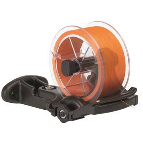 - A orientação ajustável permite que a estação de bobina gire e aponte para a ponta da haste e o clipe de retenção da linha do carretel para impedir que o carretel se desenrole quando não estiver em uso