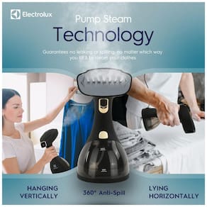 Sistema de vaporização de roupas 2 em 1 Electrolux, portátil, aquece em 30s, reservatório de 300ml, potência de 1500W, ideal para diversos tecidos.