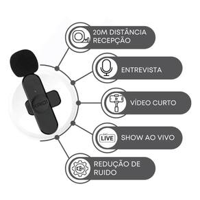 Este Sistema Microfone Sem Fio Kaidi KMF5-A Wireless Lightning para Smartphones possui frequência wireless de alta capacidade, transmissor com clipe removível e autonomia de até 4 horas, assim como oferece uma alta qualidade de som, sendo portátil e muito fácil de usar. Projetado para captação de 1 pessoas, o conjunto de transmissor e traz tecnologia Plug and Play que não necessita de aplicativos e drivers, basta conectar no celular e usar. É perfeito para streaming , reuniões, gravações, criação de e muito mais.Desenvolvido com um transmissor sem fio e um compacto, o Microfone Sem Fio Kaidi KMF5-A Lightning oferece uma captação com alta sensibilidade, áudio 360 graus e resposta rápida para que você grave todos os detalhes de som. o microfone Lapela para Smartphone é emparelhado automaticamente imediatamente após a conexão, sem necessidade de softwares adicionais. no , uma porta Lightning disponível permite conectar um carregador não incluso para alimentar o seu celular enquanto está utilizando os microfones sem fio.O microfone Lapela Sem Fio para Smartphones integra baterias de longa duração e seu alcance sem fio trabalha com uma distância de até 20m sem obstáculos . Áudio limpo e preciso, captação sem fio 360º Plug Lightning para Smartphones e Tablets iOS Transmissor com Microfone Integrado suporta gravação de 1 pessoa Baixa latência, delay inferior a 50 milissegundos Alcance de até 20 metros em locais sem obstáculos Circuito inteligente com redução de ruído Bateria interna de alta autonomia, duração de até 4 horas Compatível com uma variedade de dispositivos LightningAdequado para gravações e transmissões Youtube, Facebook, Live Streaming, Gravação de Vídeo, Vlog, TikTok, Entrevista, Aulas Online e muito mais.Imagens ilustrativas. Homologação Anatel: 110052213346 Ean: 6954268454119