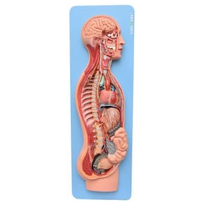 Modelo anatômico que representa de forma esquemática o sistema nervoso simpático e parassimpático demonstrando diversas estruturas detalhadas e específicas e confeccionado em PVC; No modelo anatômico SD-5060/B, 53 estruturas estão identificas (amarelo simpático / vermelho parassimpático) e numeradas, tais como: