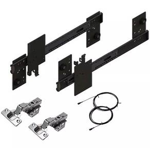 Componentes incluídos na embalagem: para 1 folha de porta Código:15317 01- par de corrediças 02- cabos com parafuso de ajustes 02- dobradiças curva copo de 35mm com amortecedor 01- manual de montagem