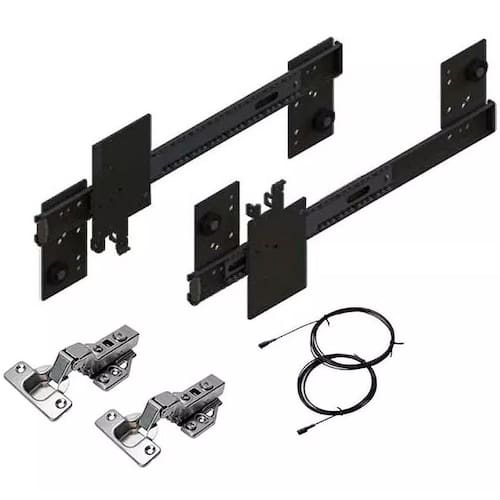 Componentes incluídos na embalagem: para 1 folha de porta Código:15329 01- par de corrediças 02- cabos com parafuso de ajustes 02- dobradiças curva copo de 35mm com amortecedor 01- manual de montagem