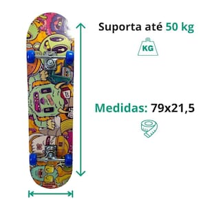 Skate board infantil funs para iniciante esporte suporta até 50kg 11172 Estampa: monstro Por que comprar com a imports - enviamos em até 24 horas; - produto de ótima qualidade; - produto testado e muito bem embalado para chegar em perfeito estado; - foco total no cliente. Informações importantes: - marca: funs - modelo: skate semi - indicado para: crianças e jovens - material: madeira e ferro - skate completo montado - dimensões: 79 cm x 21,5 cm - peso: 1,585 kg - suporta até 50 kg Marca: Não Informado Ean: 7804667142843